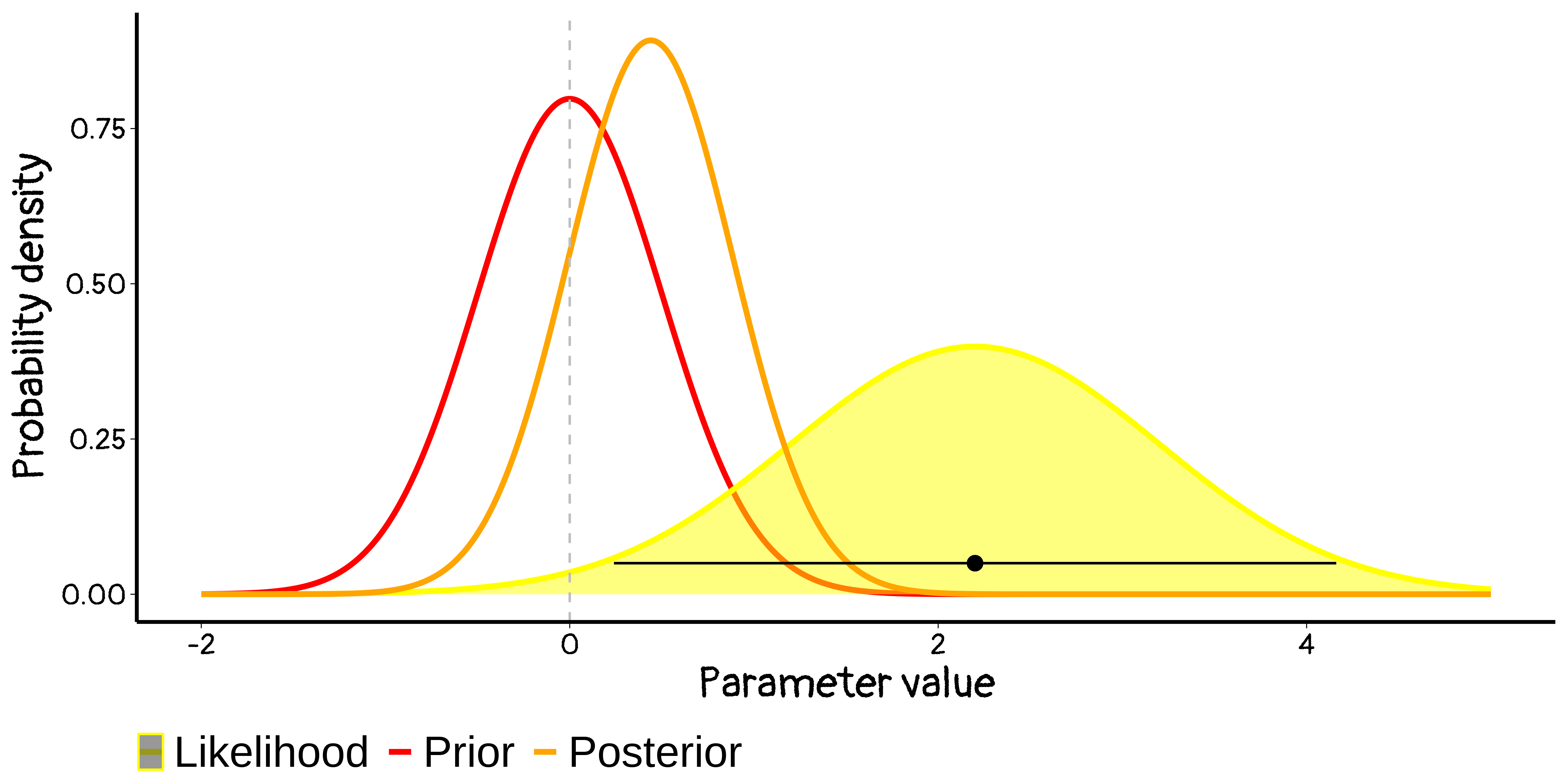 Priors here are dominated by the likelihood, and they give very similar posteriors – i.e. everyone agrees. (Phew!)