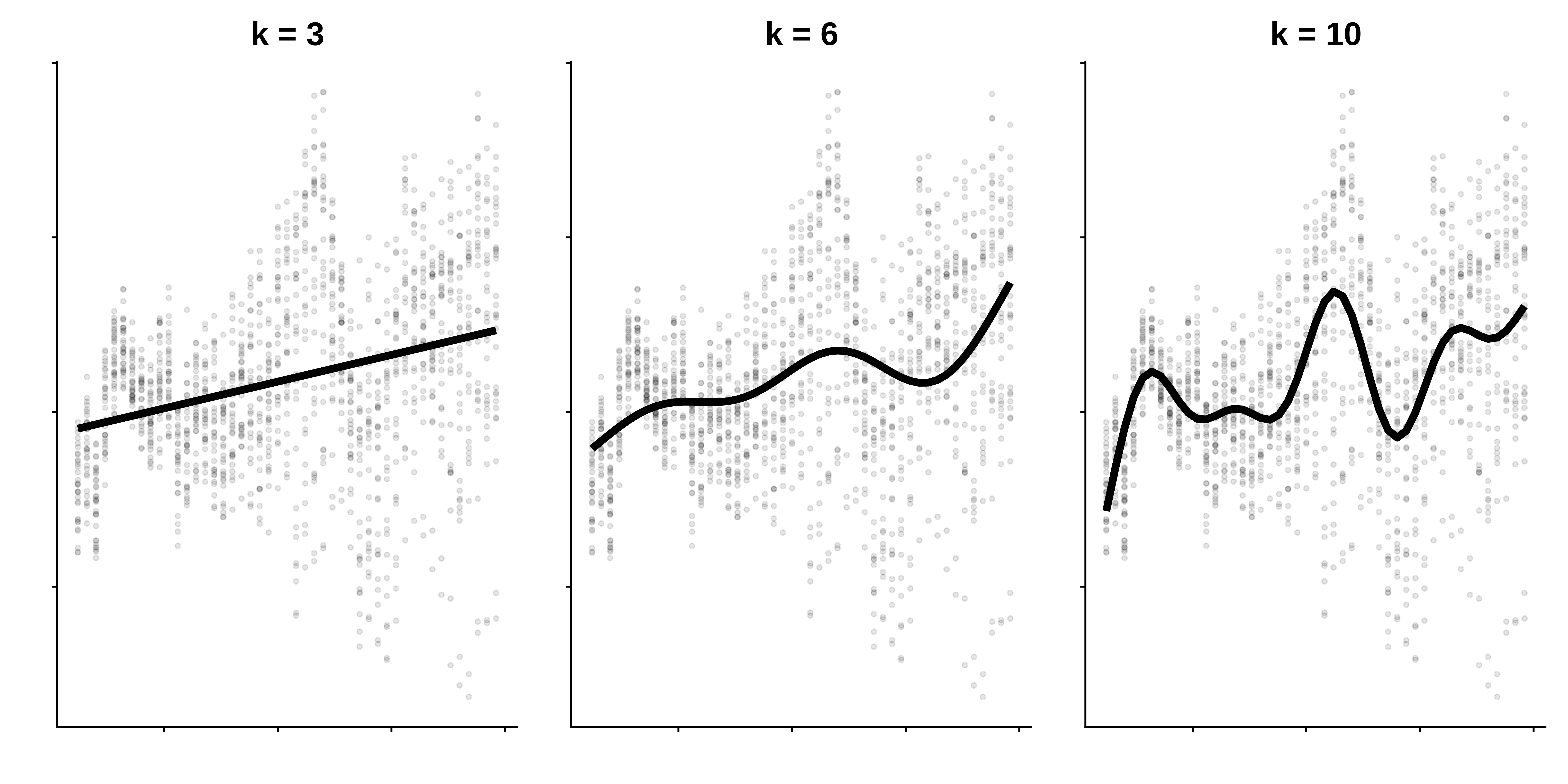 This wiggliness is further controlled by the basis dimension \(k\), which sets the number of basis functions used to create a smooth function.